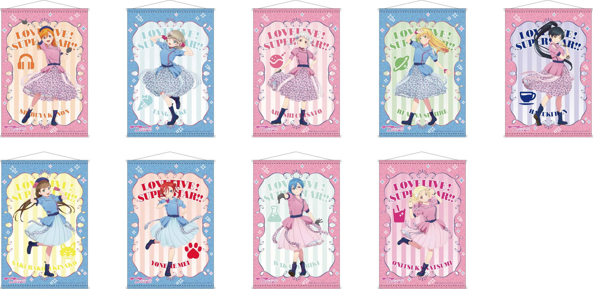 原宿ゲーマーズにて、Liella!のTVアニメ2期OP「WE WILL!!」を使用したアクリルフィギュア、B2タペストリー、ワイヤーキーホルダー、アクリルバッジが先行発売されます。