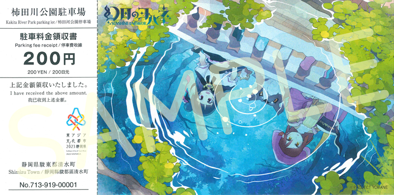 静岡県清水町より、『カキタ湧水口』イラストを使用した版柿田川公園駐車料金領収証を交付!