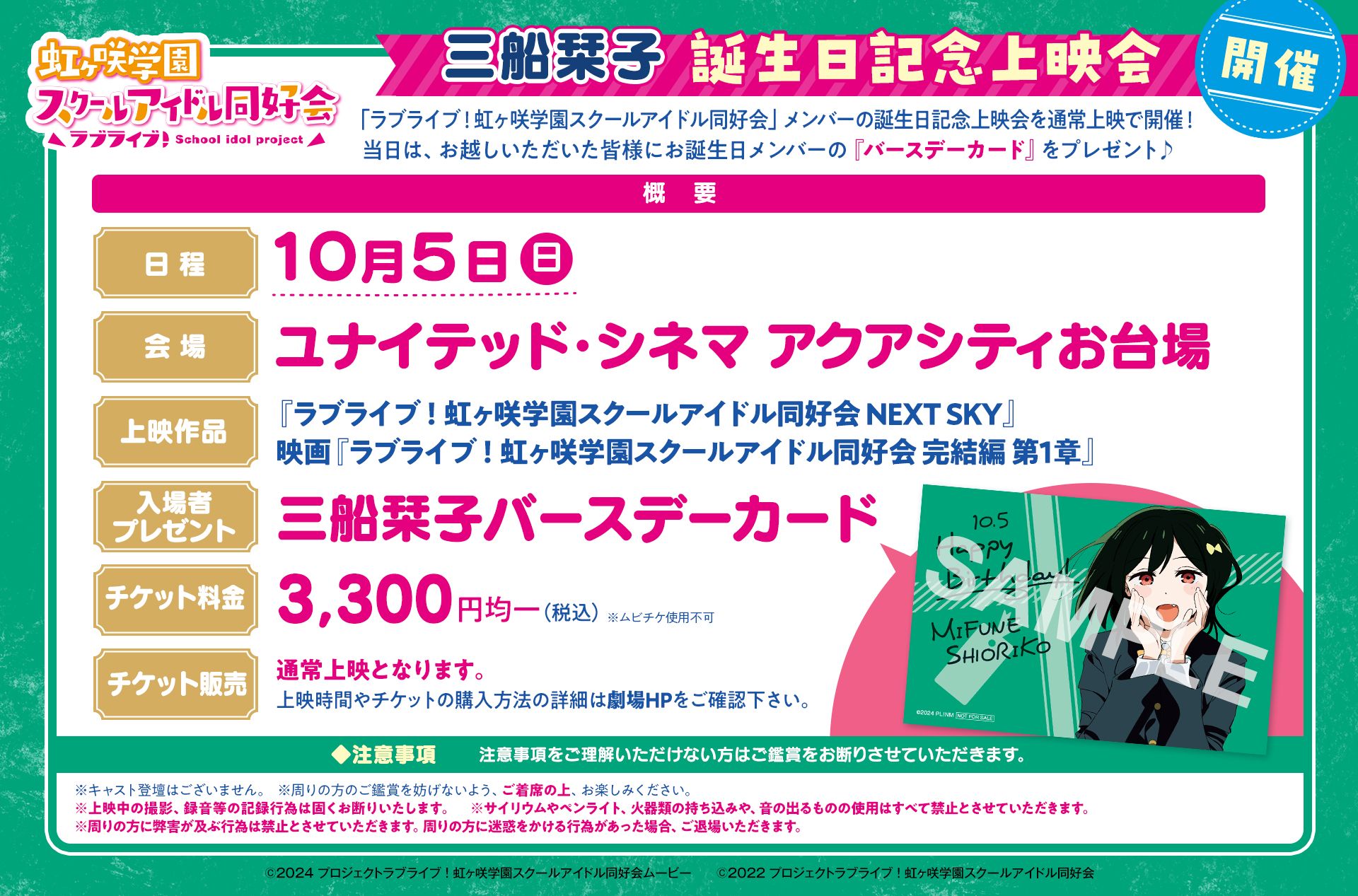 「ラブライブ!虹ヶ咲学園スクールアイドル同好会」三船栞子誕生日記念上映会 開催!